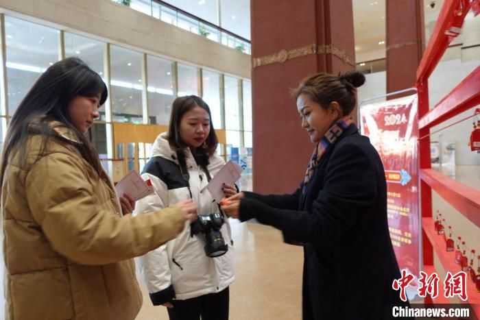 當日上午,西藏博物館中央大廳聚集了許多參加現場活動的游客。游客以隨機抽福袋、領獎品的形式參與活動。參與者紛紛表示在新年的第一天開展這樣的活動很有意義。針對元旦期間來館參觀的游客,西藏博物館還制作有館藏文物元素的主題紀念賀卡供游客留念。