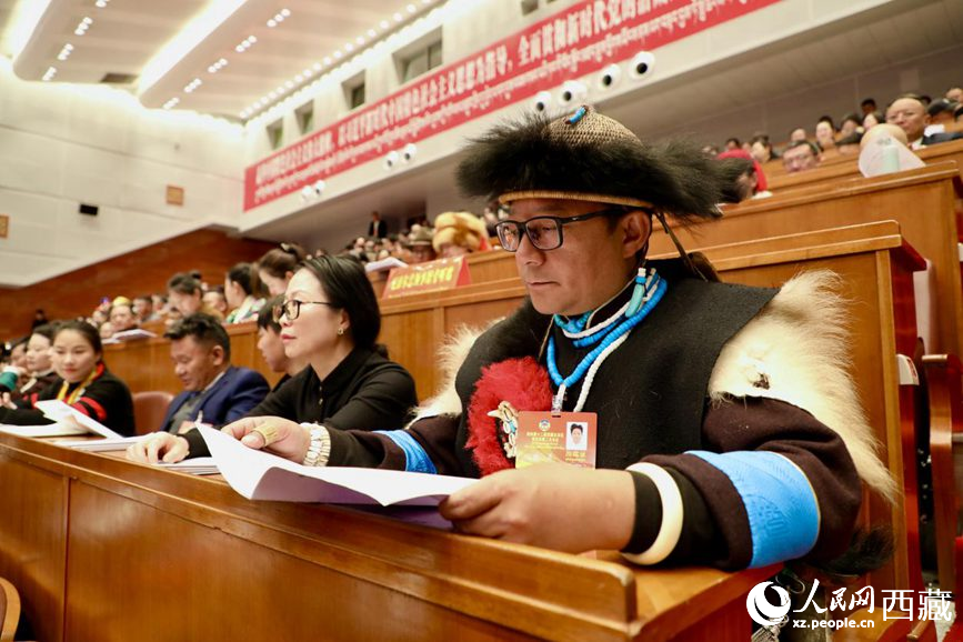 西藏自治區(qū)十二屆人大二次會(huì)議現(xiàn)場(chǎng)。