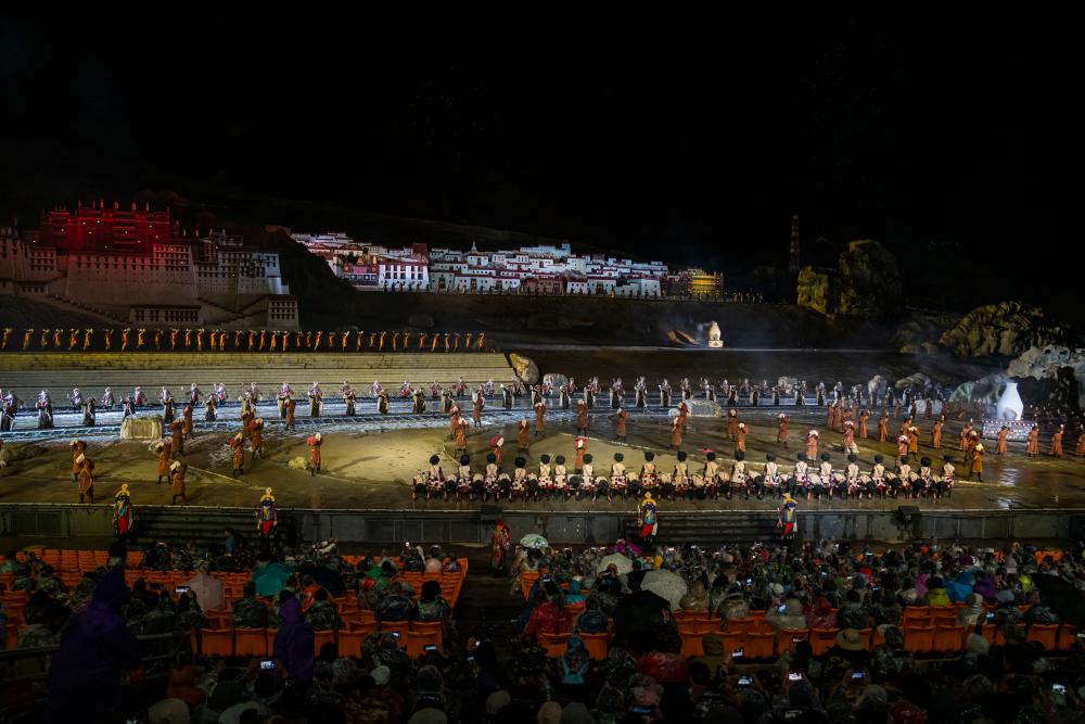 2023年6月15日拍攝的大型實景劇《文成公主》的表演現(xiàn)場。新華社記者孫非攝