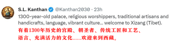 此外,新西蘭媒體人安柏然、《沙特阿拉伯新聞》記者賈邁勒·杜巴希、愛沙尼亞-中國商會主席達(dá)維德·維克托、美國反戰(zhàn)人士克里斯蒂·富蘭克林,我駐馬爾代夫大使館和駐意大利、英國、巴基斯坦外交官轉(zhuǎn)贊評,紛紛對西藏的美麗景色和深厚文化表示贊賞。