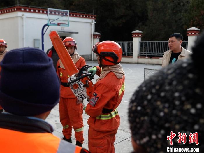 圖為消防指戰(zhàn)員理論講解。西藏林芝市森林消防支隊波密中隊供圖