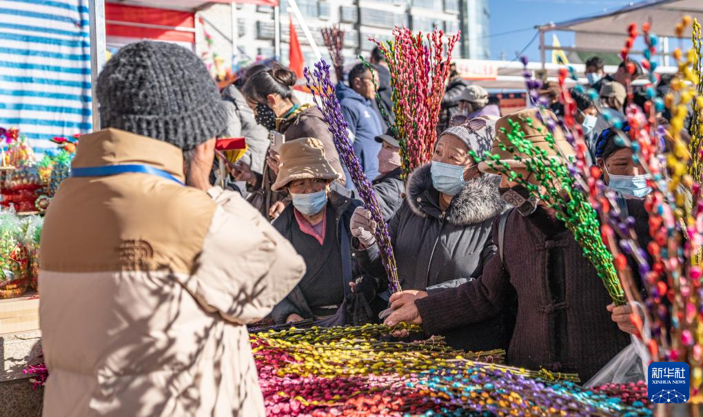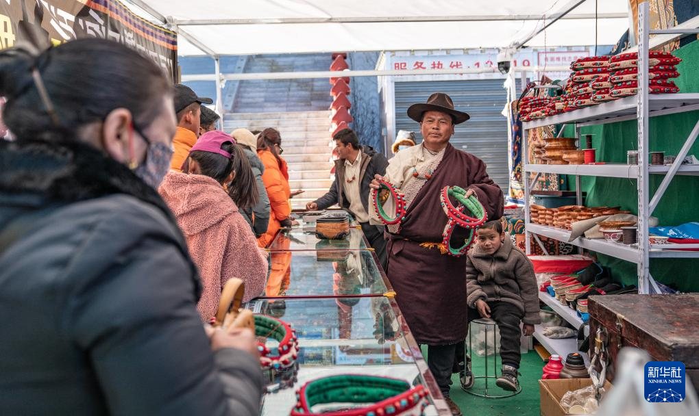 1月9日,商戶在推銷“巴珠”(藏族頭飾)。新華社發(丁增尼達 攝)