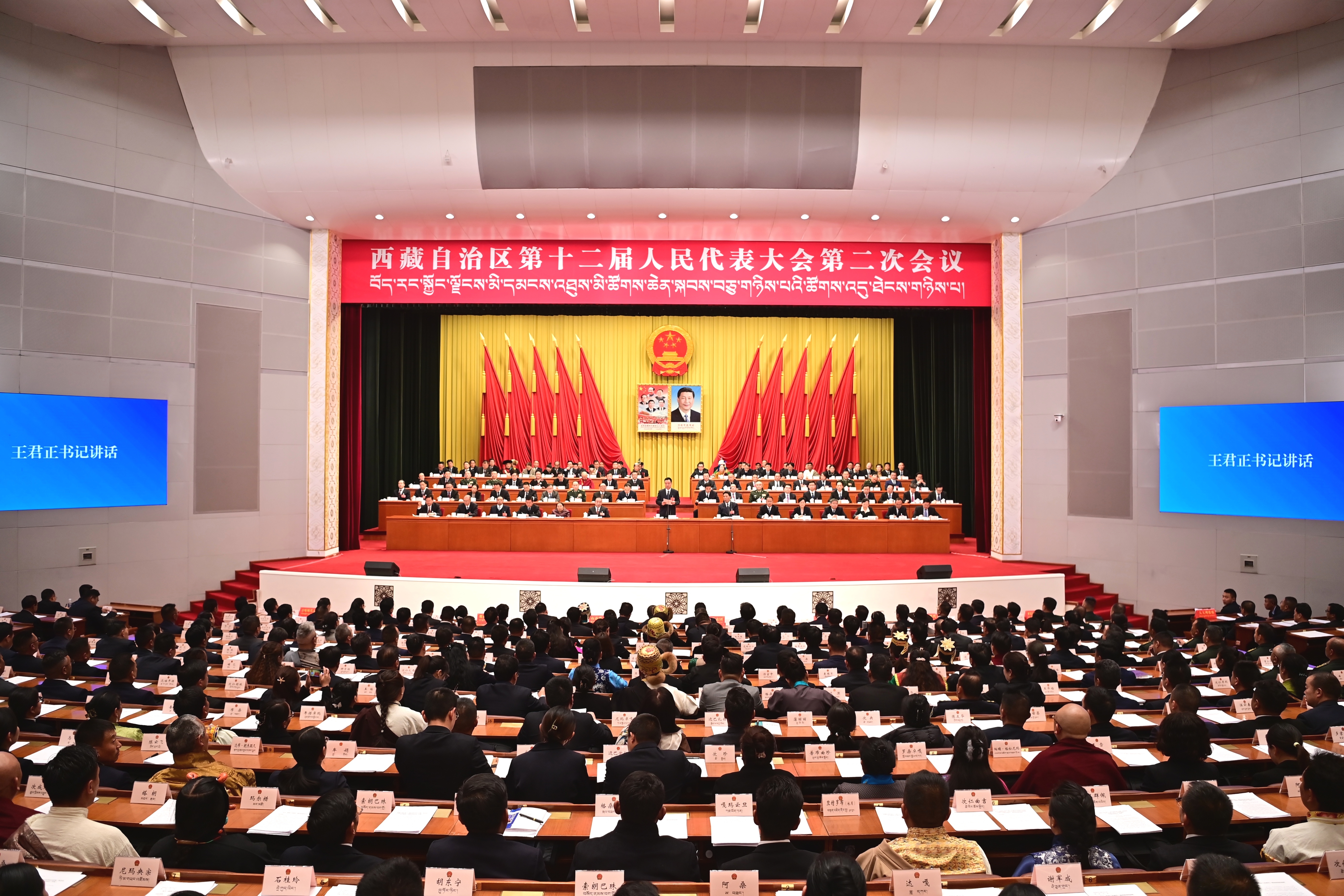 1月10日下午,自治區第十二屆人民代表大會第二次會議圓滿完成各項議程,在拉薩勝利閉幕。自治區黨委書記王君正出席閉幕會并講話。記者 旦增西旦 攝