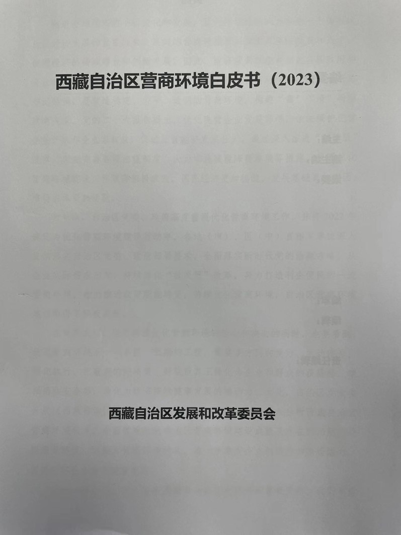 2024年1月23日,《西藏自治區營商環境白皮書(2023)》發布,這是西藏自治區首次發布營商環境白皮書。西藏聚焦“審批事項最少、審批時限最短、審批流程最優、審批服務最好”目標,持續深化“放管服”改革,營商環境改革成效顯著。