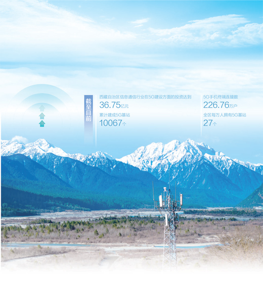 截至目前,西藏全區信息通信行業在5G建設方面的投資達到36.75億元,累計建成5G基站10067個,5G手機終端連接數226.76萬戶,全區每萬人擁有5G基站27個。高速、穩定、優質的5G網絡服務,助力雪域高原高質量發展。