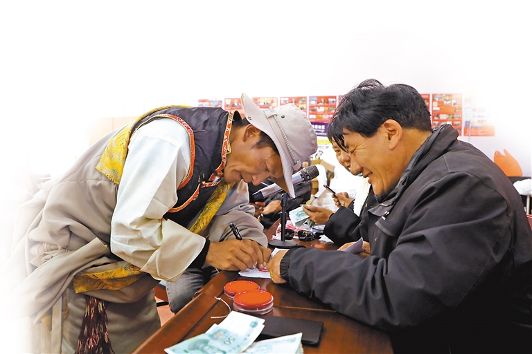 當記者走進改則縣改則鎮圓夢新居社區,一場別開生面的合作社分紅儀式正在火熱進行。現場,農牧民盛裝出席,數著自家所得分紅,喜悅之情溢于言表。