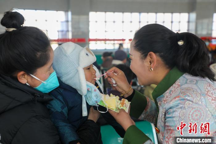 春運首日,拉薩車務段在日喀則站候車大廳開展“溫馨出行 文明出行”主題活動,火車站青年職工帶來了日喀則當地特色扎念彈唱,并為旅客送上溫暖的甜茶,和旅客一起分享蛋糕慶祝日喀則站第十個春運等活動,營造出喜迎新春的節日氛圍。