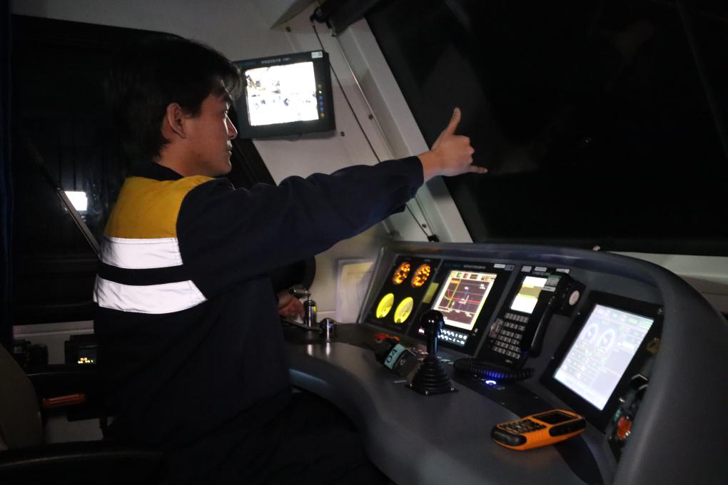 拉薩南接觸網維修隊的作業車司機正在操作接觸網軌道作業車(1月24日攝)。新華社發(拉巴次仁 攝)