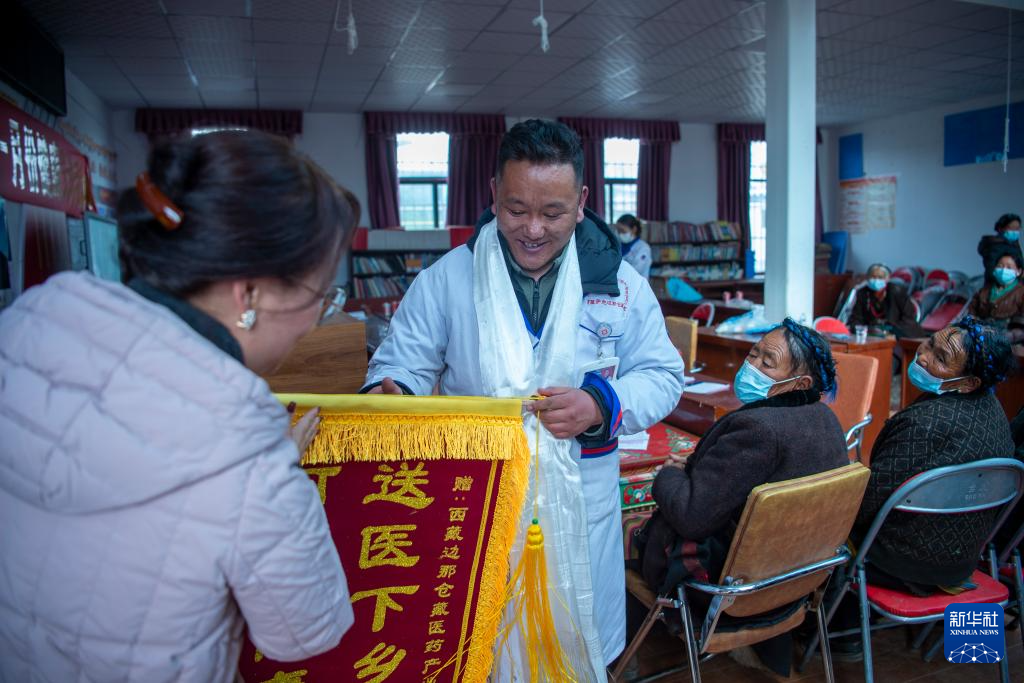 義診活動即將結束時,拉布村駐村工作隊為加央和同事們送來了錦旗。工作隊隊長邊巴卓瑪講:“義診活動很有意義。醫生們到了村里,能解決農牧民看病難的問題,我們真的很感謝他們。”
