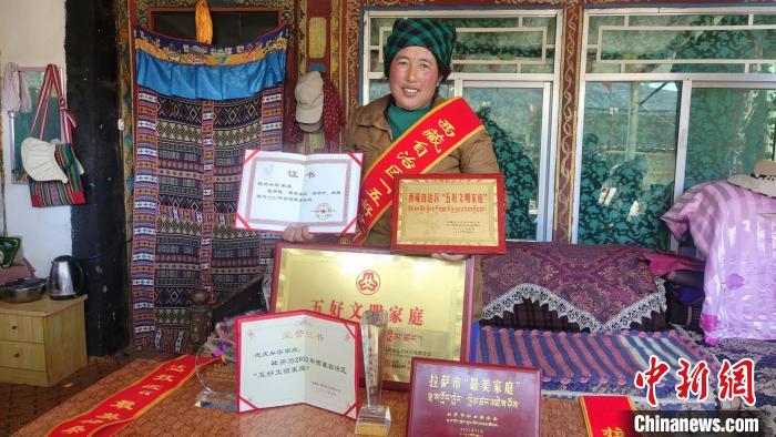 全國最美家庭、西藏自治區“五好文明家庭”、西藏自治區“最美民族團結家庭”、拉薩市“最美家庭”……當記者走進德慶央宗家的客廳時,首先映入眼簾的便是擺放在藏式柜子上的諸多榮譽證書及獎杯,這是夫妻二人在平凡的生活中,遵紀守法、孝敬老人、樂于助人等贏得的肯定與榮譽。