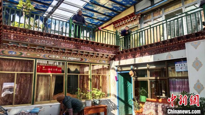 “樓上樓下都有陽(yáng)光,很暖和?!?月2日,西藏網(wǎng)絡(luò)媒體新春走基層活動(dòng)記者一行來(lái)到山南市瓊結(jié)縣昌嘎村,此時(shí)該村四組村民多吉在家里的二樓陽(yáng)光房?jī)?nèi)準(zhǔn)備過(guò)年用的經(jīng)幡,他的老伴則在一樓庭院內(nèi)整理衣物,午后的陽(yáng)光透過(guò)玻璃窗落在沙發(fā)上,坐在這里感覺(jué)不到冬的寒意,郁郁蔥蔥的綠植讓這所溫馨的居所生機(jī)勃勃。