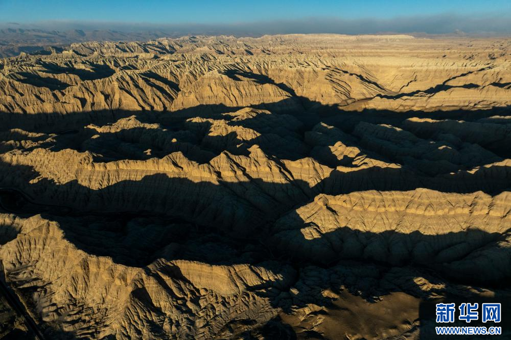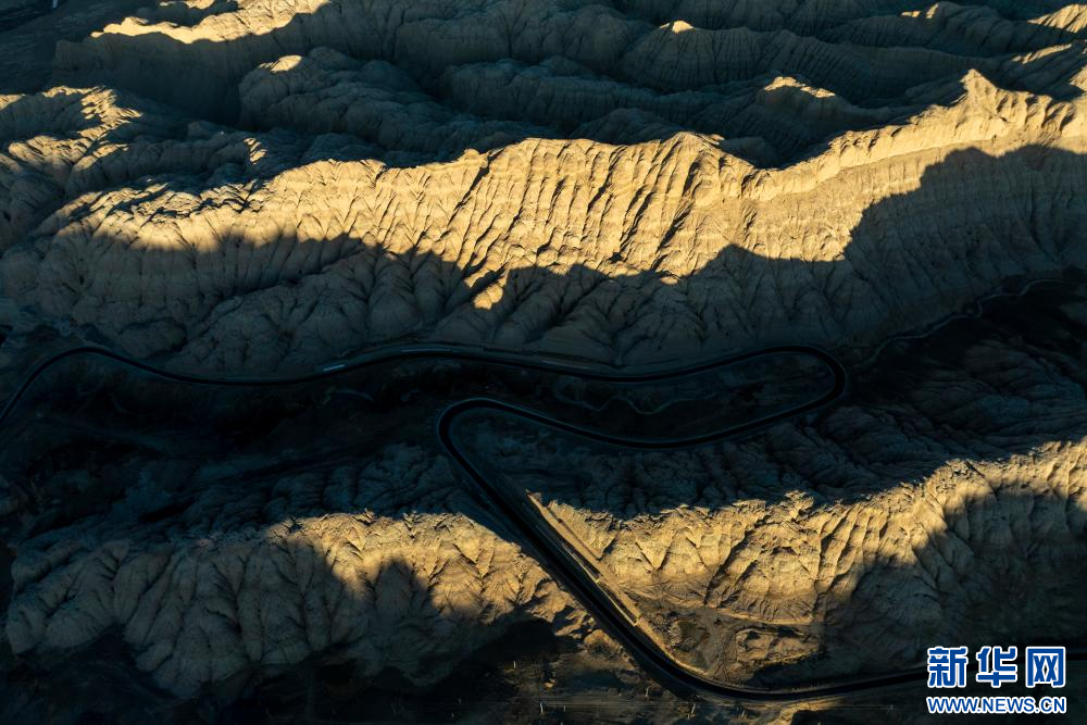 1月31日拍攝的札達土林和公路(無人機照片)。新華網 旦增努布 攝