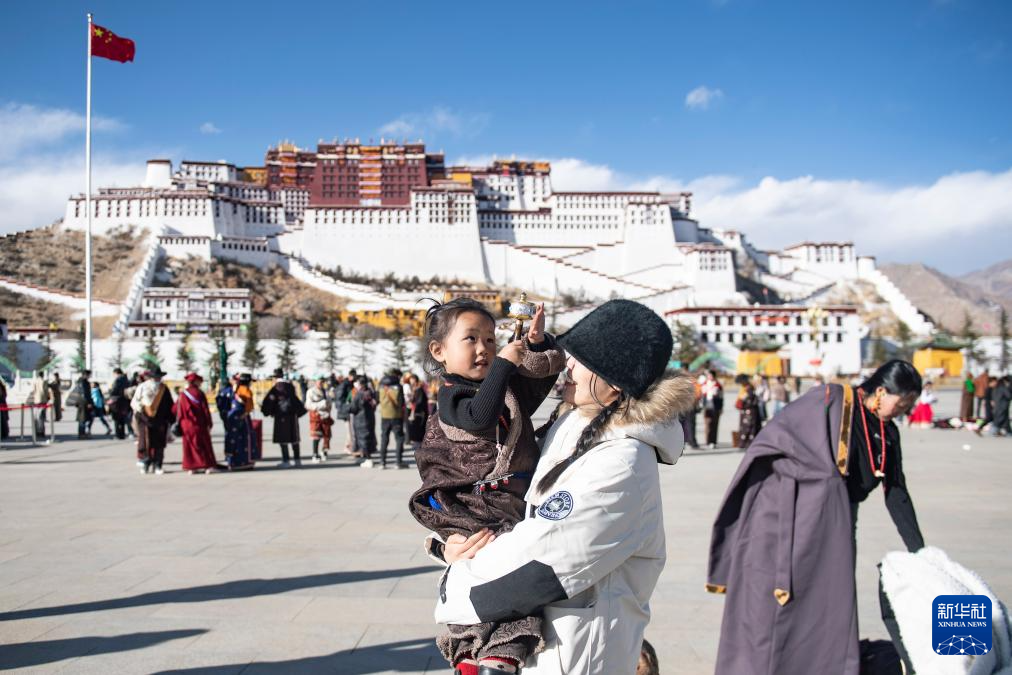 2月11日,來自四川甘孜的游客在布達(dá)拉宮廣場上拍照留念。新華社記者 孫非 攝