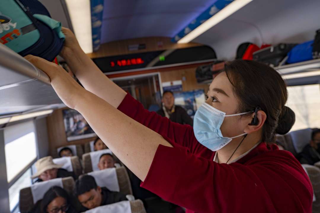 隨著列車從拉薩站緩緩開出,李丹開始了列車服務——邊走邊觀察邊詢問,她細心地觀察著乘客的情況。“這兩天是節后返程高峰,我們車班針對旅客年齡、身份等不同特點,進行了歸納與分析,并根據不同群體的需求,整理溝通要點,收集服務案例,使我們的服務能更好地滿足不同旅客的需求。”李丹說。