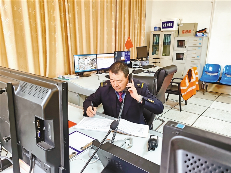 “21時05分,室外防護正常……”在作業現場,偉色措姆本著高度的責任心,眼神銳利,一邊通過對講機和室內聯系,一邊瞭望并認真在防護記錄上做好記錄。