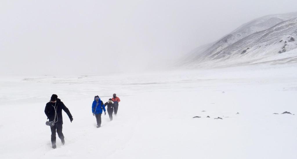 新華社記者(左二)在三江源國家公園(唐古拉山北部片區)采訪。新華社記者 晉美多吉 攝