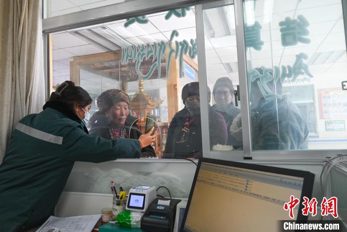 圖為醫院工作人員幫前來看病的農牧民在手機上操作激活醫保電子憑證。趙朗 攝