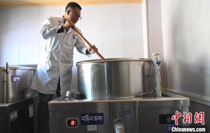 圖為仁增多杰在熬制藏藥。趙朗 攝