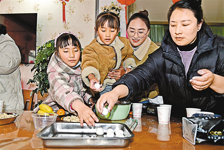拉薩市曲水縣茶巴拉鄉新時代文明實踐所組織開展“我們的節日”主題活動,大家一起品湯圓、制花燈、猜燈謎。記者 格桑倫珠 攝