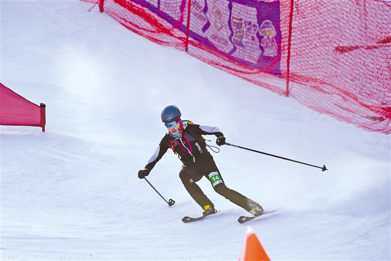 此次比賽共有兩條賽道,呈字母Y形,賽道全長1100米,累計爬升130米。選手們分別需要完成兩次穿板上升、轉換下滑,然后在接力區身體觸碰完成接力,比賽充滿挑戰。