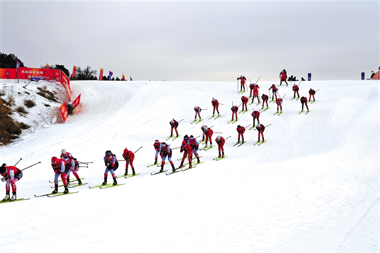 2月1日,第十四屆全國冬季運動會滑雪登山項目公開組混合接力比賽在內蒙古扎蘭屯市金龍山滑雪場舉行。