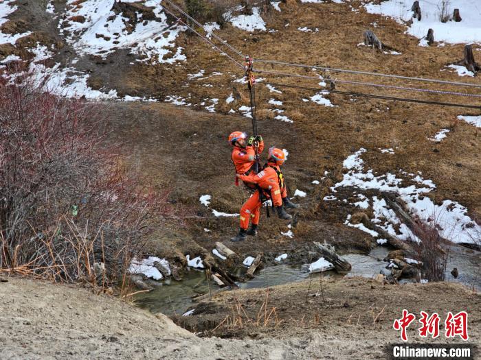 圖為拉練中開展繩索救助應用實戰化訓練。西藏林芝市森林消防支隊供圖