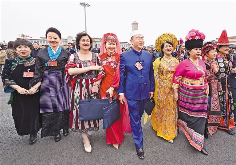 圖為3月4日,中國人民政治協商會議第十四屆全國委員會第二次會議在北京人民大會堂開幕。這是全國政協委員走向會場。新華社記者 李鑫 攝
