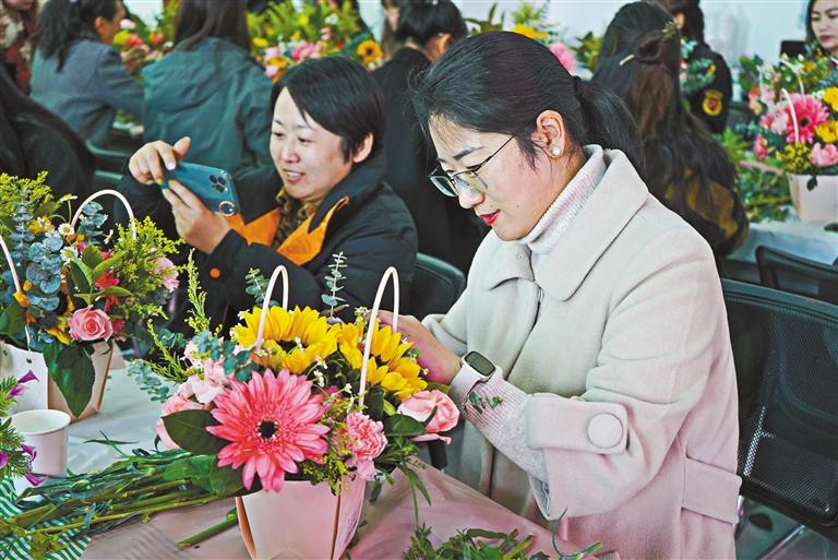 近日,拉薩市堆龍德慶區婦聯開展“巧手插花綻芳華·魅力巾幗展風采”花藝培訓特色課程。圖為婦女在制作花藝作品。 拉巴桑姆 攝