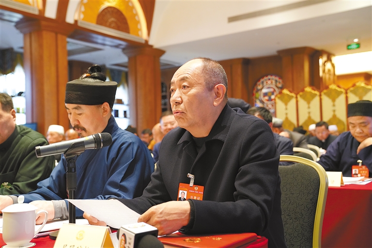 住藏全國政協委員尼瑪瓊拉,在宗教界小組討論中踴躍發言。