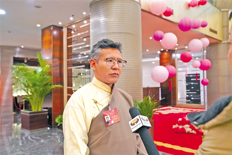 會議期間,住藏全國政協委員達瓦頓珠在委員駐地接受媒體采訪。