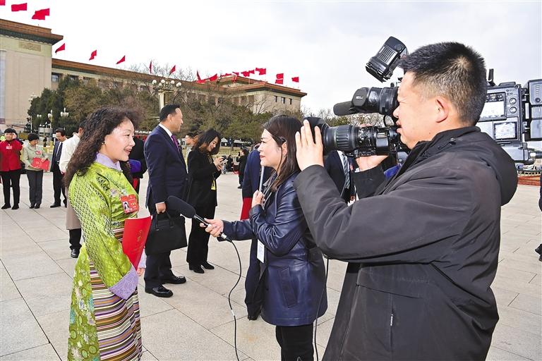 圖西藏全國人大代表白瑪措在接受區內媒體采訪。