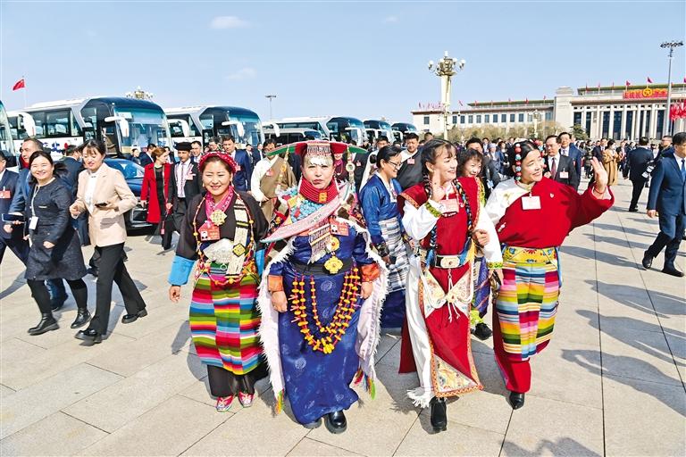 圖為西藏全國人大代表步入會場。