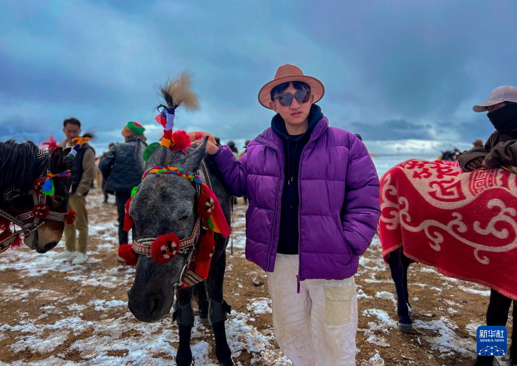 海休期間,強巴在尼瑪縣老家參加傳統賽馬節活動(手機照片)。新華社發