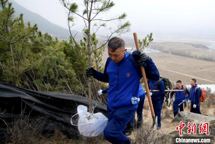 在森林消防隊員的共同努力下,一棵棵樹苗整齊排列在春天的土地里,在雪山腳下形成一道亮麗風景,展現出森林消防隊員為守好駐地綠水青山的堅定信念。