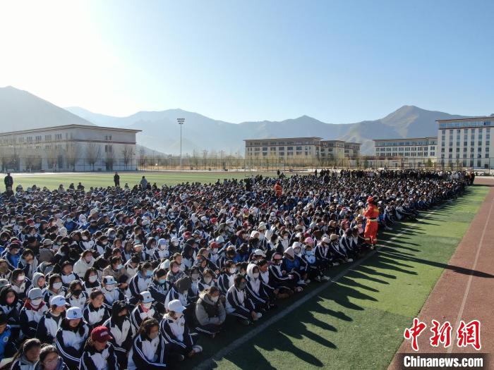 4300名師生參與消防安全知識講座,初發小火處置,教學樓真煙環境緊急逃生等演練。據悉,這是首次在高原同步開展千人真煙環境逃生演練。