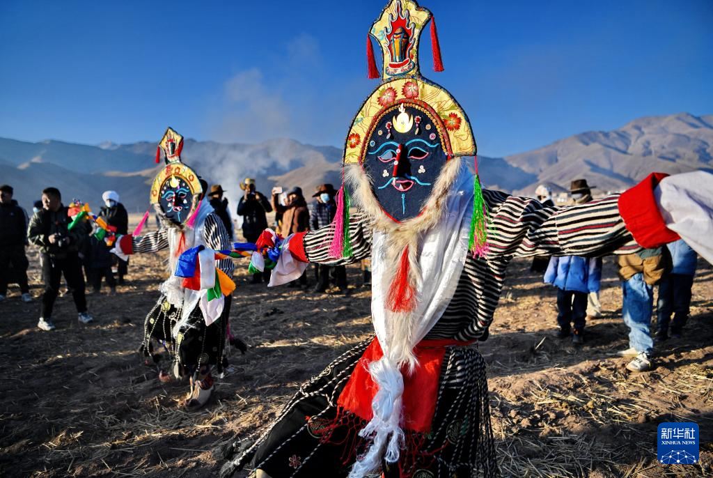 3月16日,在西藏拉薩市林周縣春堆鄉的春耕儀式現場,當地群眾表演藏戲。新華社記者 張汝鋒 攝