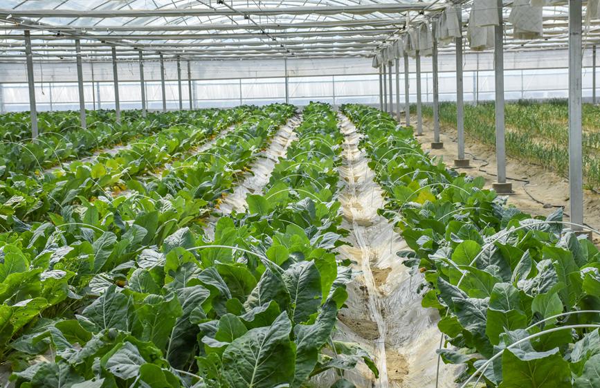 戈壁設施農業,不是簡單地在戈壁灘上開墾土地發展農業,而是要將光、熱、水、肥、土壤等一系列生產要素進行合理配置。綠之源的規劃建設,走出了一條節地、節水、高效循環的戈壁生態農業發展路子。節地,充分利用了閑置的戈壁荒灘資源,不占耕地,有效解決了菜糧爭地矛盾;節水,日光溫室作物生產,全部配套了膜下滴灌技術,使有限的水資源得到了高效利用;高效循環,溫室采取“套種”種植模式,讓土地不空茬,連作多種作物,有效提高溫室利用率,實現“全年種植、全年采收”,改善了土壤沙化環境,提升了土壤地力,更是提高了蔬菜品質。