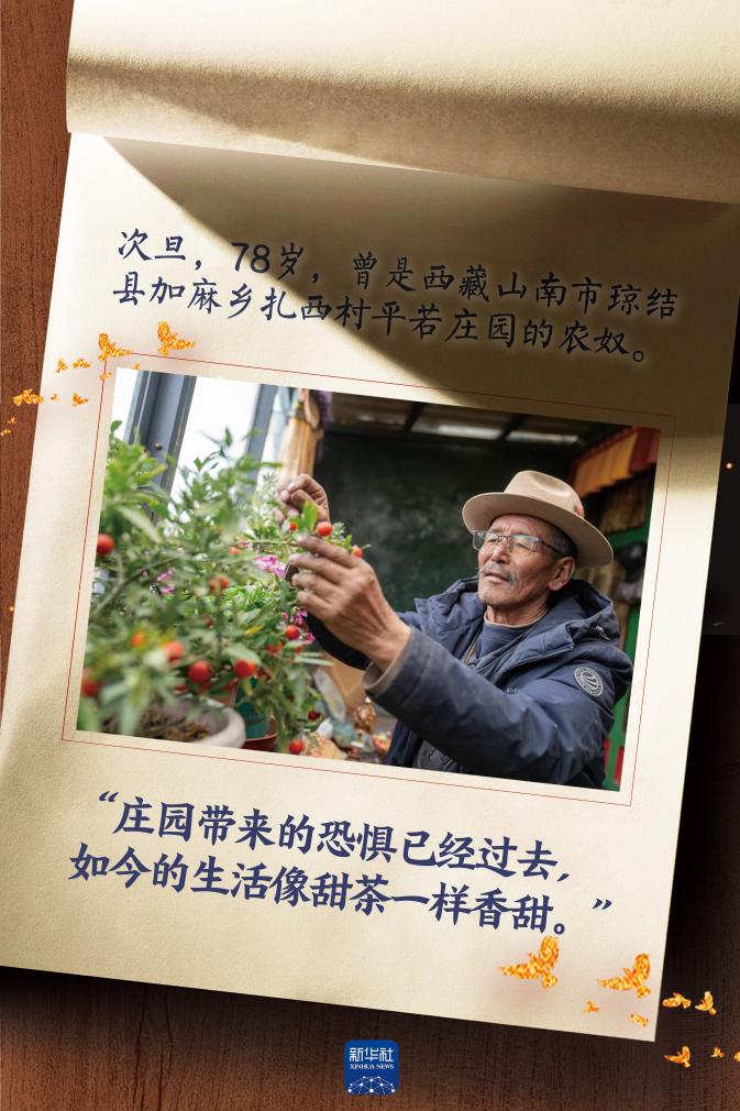 從昏暗羊圈到藏式二層小樓,次旦家的變化天翻地覆。“莊園帶來的恐懼已經過去,現在兒女都長大成人,我有養老金、有醫保,沒有后顧之憂。如今我們的生活像甜茶一樣香甜。”次旦說。(參與采寫:旦增尼瑪曲珠)