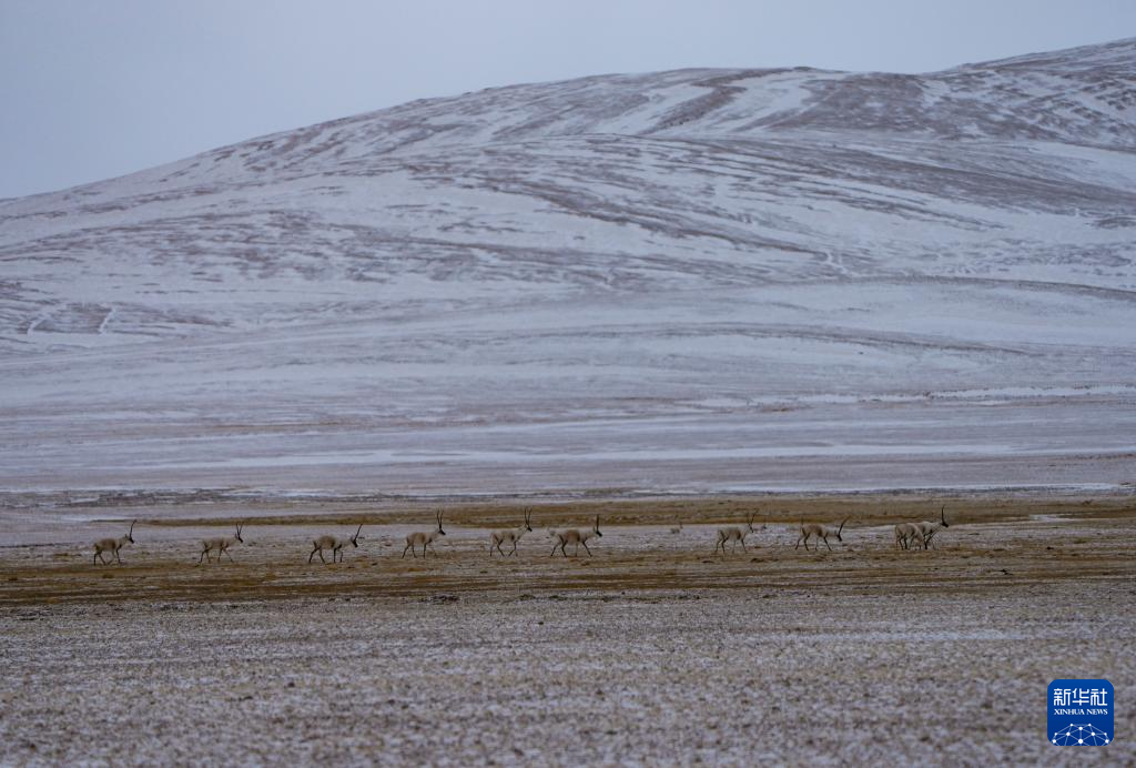 生活在三江源國家公園唐北片區的藏羚羊(2月1日攝)。新華社記者 儲國強 攝