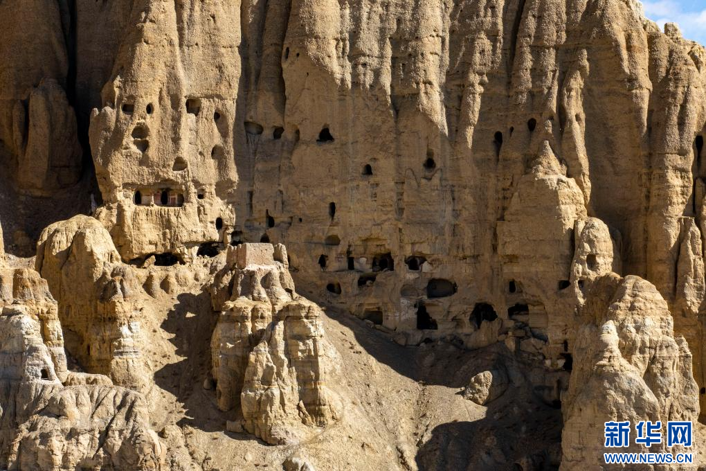 達巴遺址位于西藏阿里地區札達縣境內,其主要建筑分布在兩座山脊之上,整個遺址共有洞穴200余處,且有獨立的碉樓、寺廟建筑遺跡、居民窯洞等建筑,在白雪的映襯下,顯得格外雄渾而神秘。
