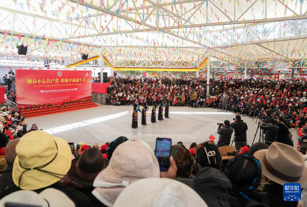 3月28日,群眾在拉薩市宗角祿康公園內觀看文藝演出,慶祝西藏百萬農奴解放65周年。新華社記者 姜帆 攝