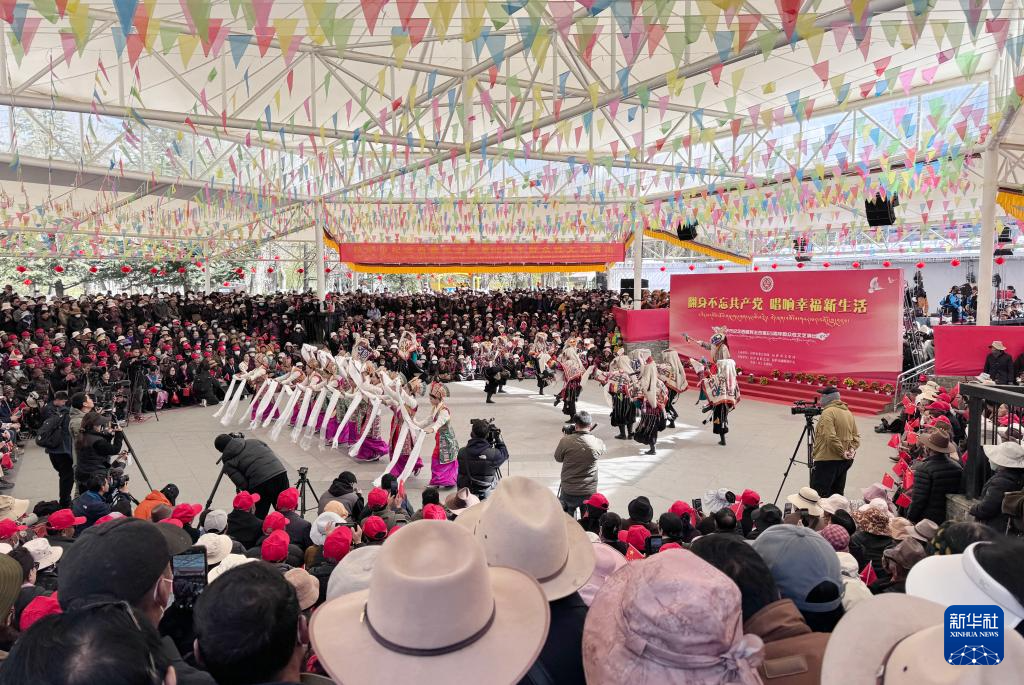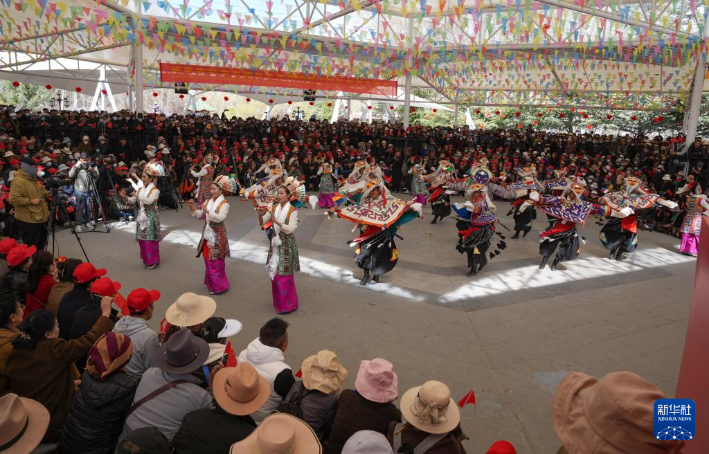3月28日,群眾在拉薩市宗角祿康公園內觀看文藝演出,慶祝西藏百萬農奴解放65周年。新華社記者 晉美多吉 攝