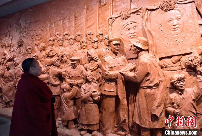 圖為僧人在西藏百萬農奴解放紀念館參觀。李林 攝