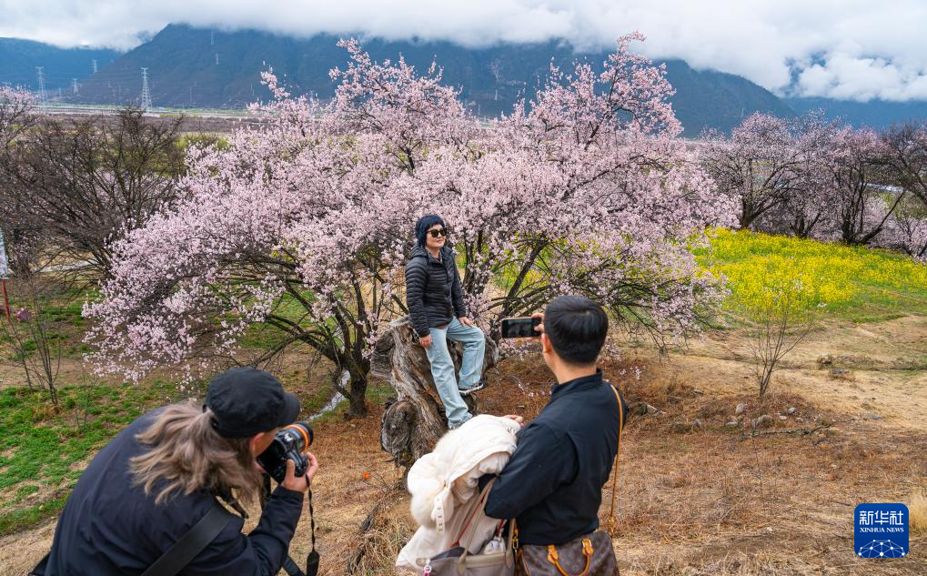 3月31日,游客在林芝市巴宜區嘎拉村拍照留念。新華社記者 丁增尼達 攝