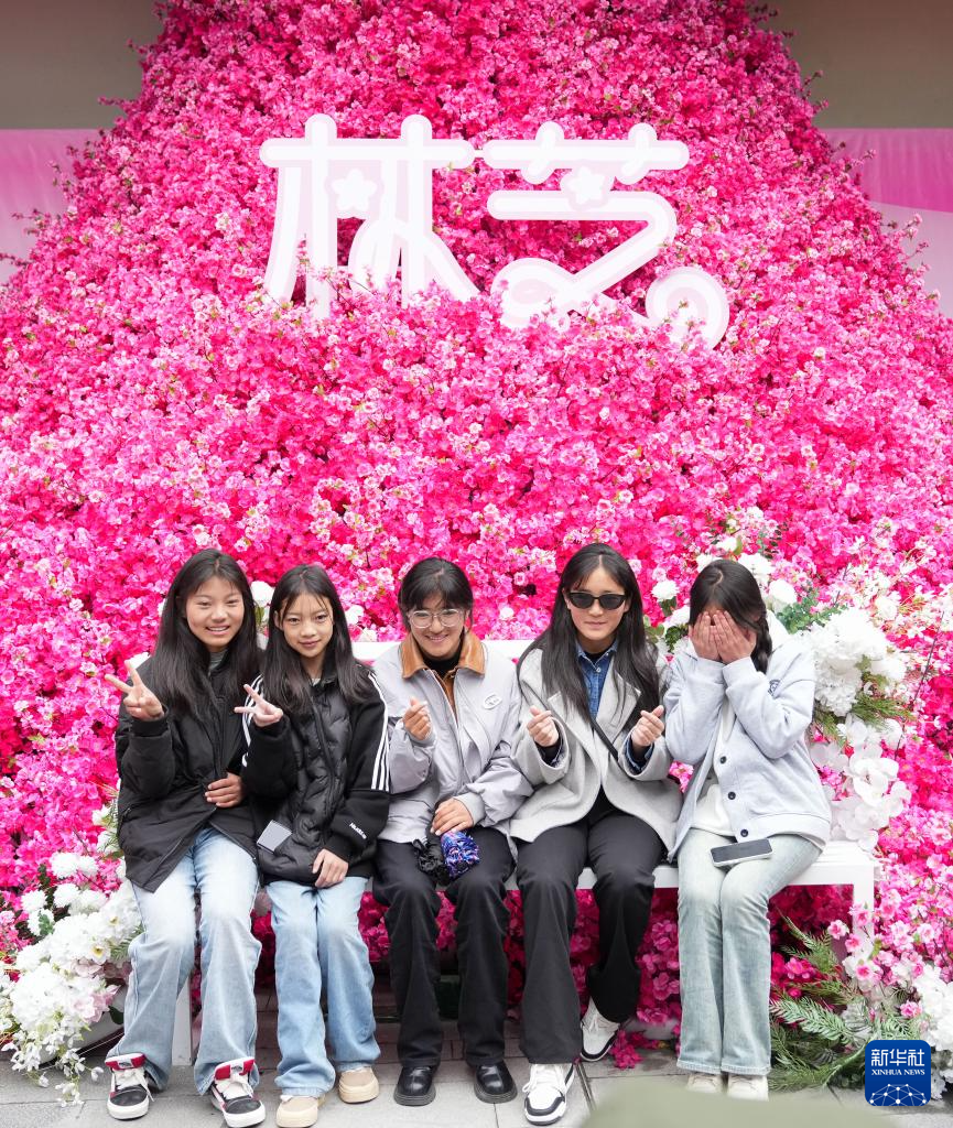 3月31日,游客在林芝市第二十一屆桃花旅游文化節活動現場拍照留念。新華社記者 丁汀 攝