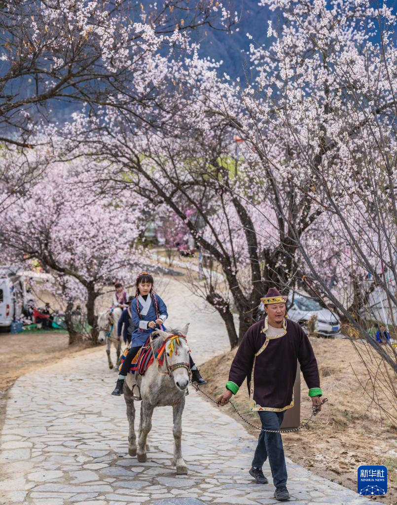 3月31日,游客在林芝市巴宜區嘎拉村體驗騎馬。新華社記者 孫非 攝