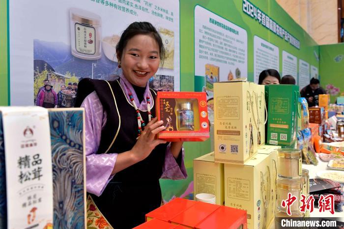 圖為高原農特產品產銷對接活動現場,企業展示自己的產品。李林 攝