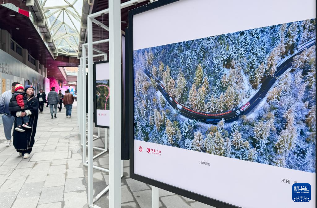 3月31日,觀眾在林芝市第二十一屆桃花旅游文化節上參觀攝影作品展。新華社記者 丁汀 攝