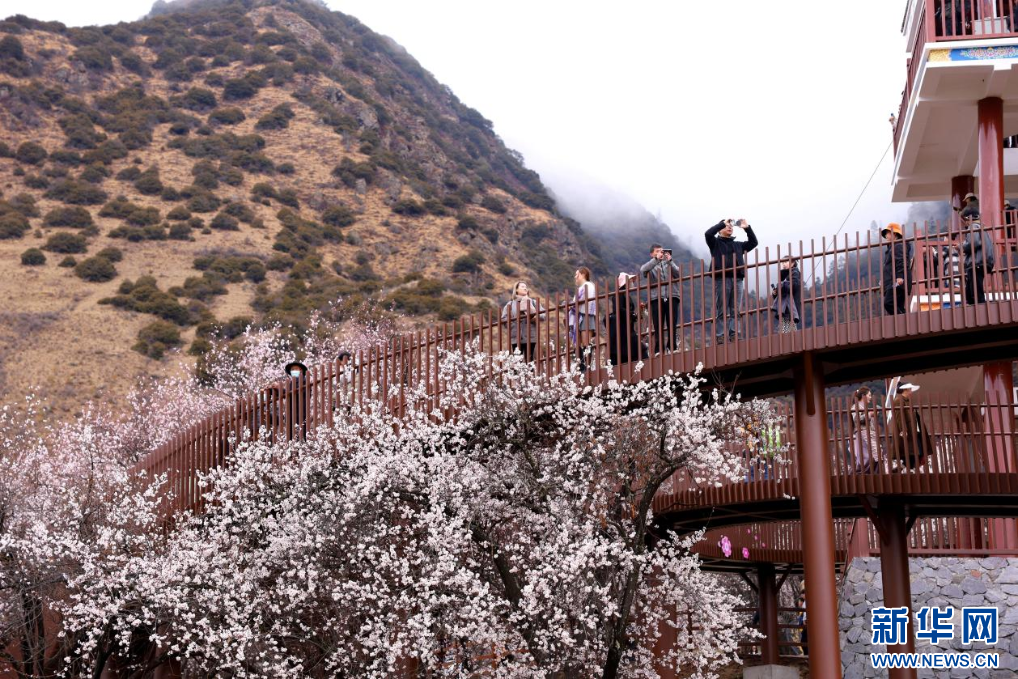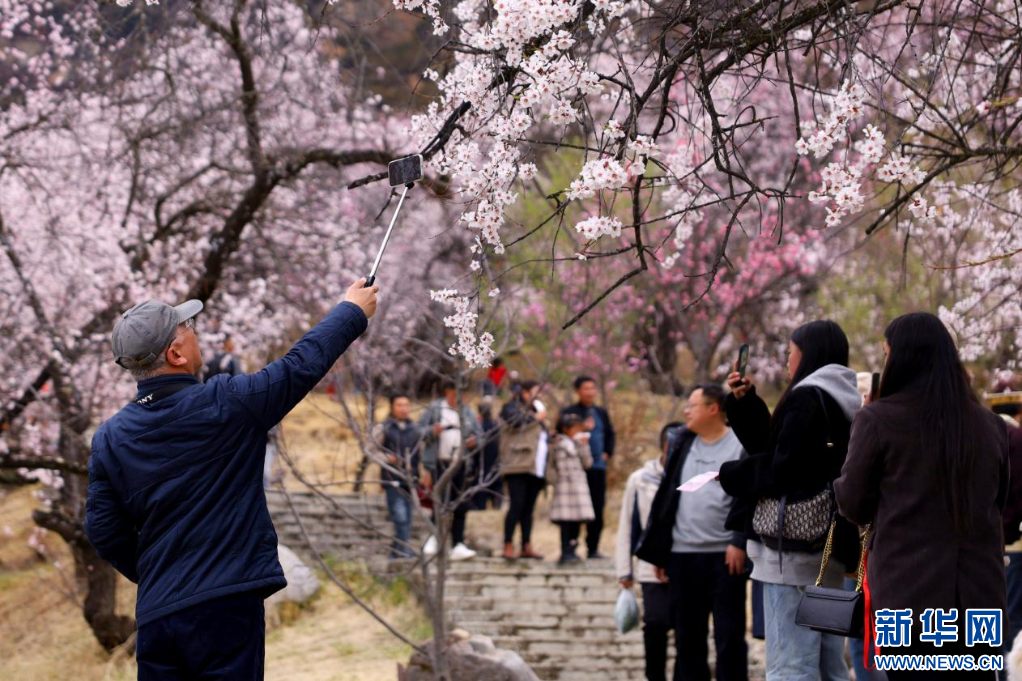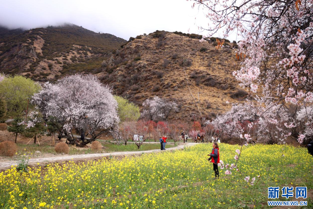3月31日,游客在林芝市巴宜區嘎拉村拍照留念。新華網發 李騰 攝