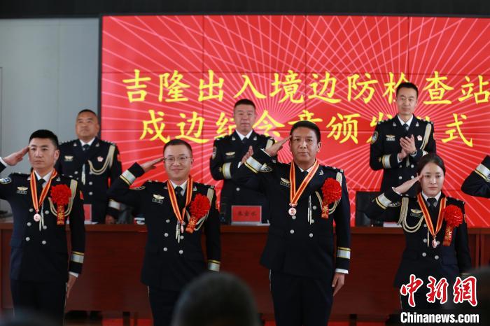 2日,西藏吉隆出入境邊防檢查站在吉隆口岸舉行戍守邊疆紀念章頒發儀式,20名移民管理警察獲頒銅制戍邊紀念章。